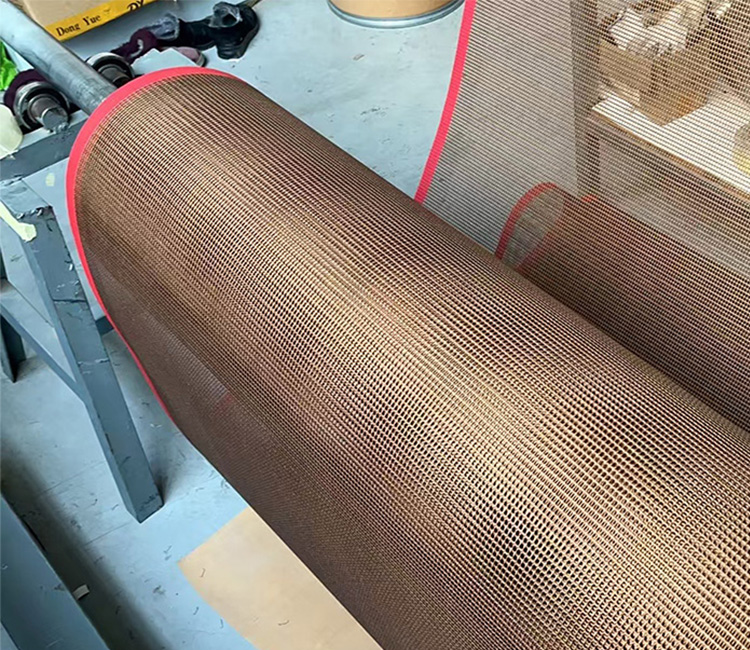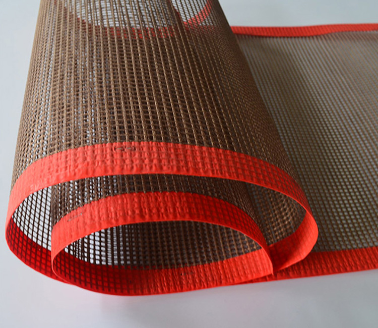 PTFE(特氟龙)网格烘房输送带是以悬浮聚四氟乙烯乳液为原料,浸渍高性能玻璃纤维网而成,是一种高性能多用途的复合材料新产品。目前主要应用于无纺布烘干机,织布印花,印染机;外衣织物的缩水机,高频率和紫外线烘干;输送带的高温烘干,各类食品烧烤及冷冻机;硬纸板的分裂等。